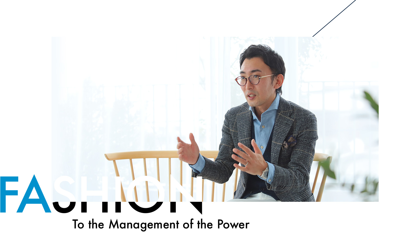 それまでは地元のデパートに入っているお店で、選び方もわからずに店員さんから勧められるものを買っていましたが、大山さんのスタイリングを受けてから、ファッションの視点が変わりました。どう見せるか、どう見られるかがすごく重要なんだなって。そういう風に視点を変えてから、今のファッションの方がいいって声がスタッフからも挙がるようになったんです。特にうちは女性スタッフが多く、どう見られるかと言う点はとても重要なので、清潔感のある社長らしい服装は好評ですね。